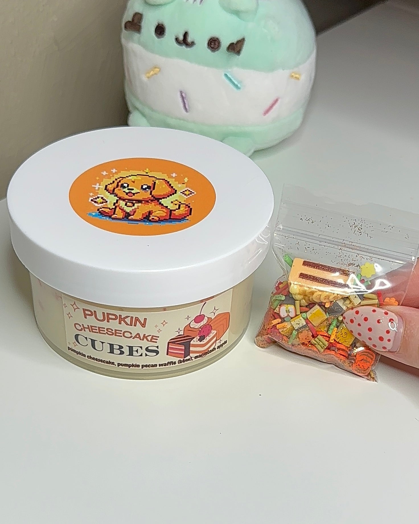 🍰 add ins: pumpkin cheesecake charm, orange glitter, apple sprinkle mix, cheesecake cube sprinkles, pumpkin fimos